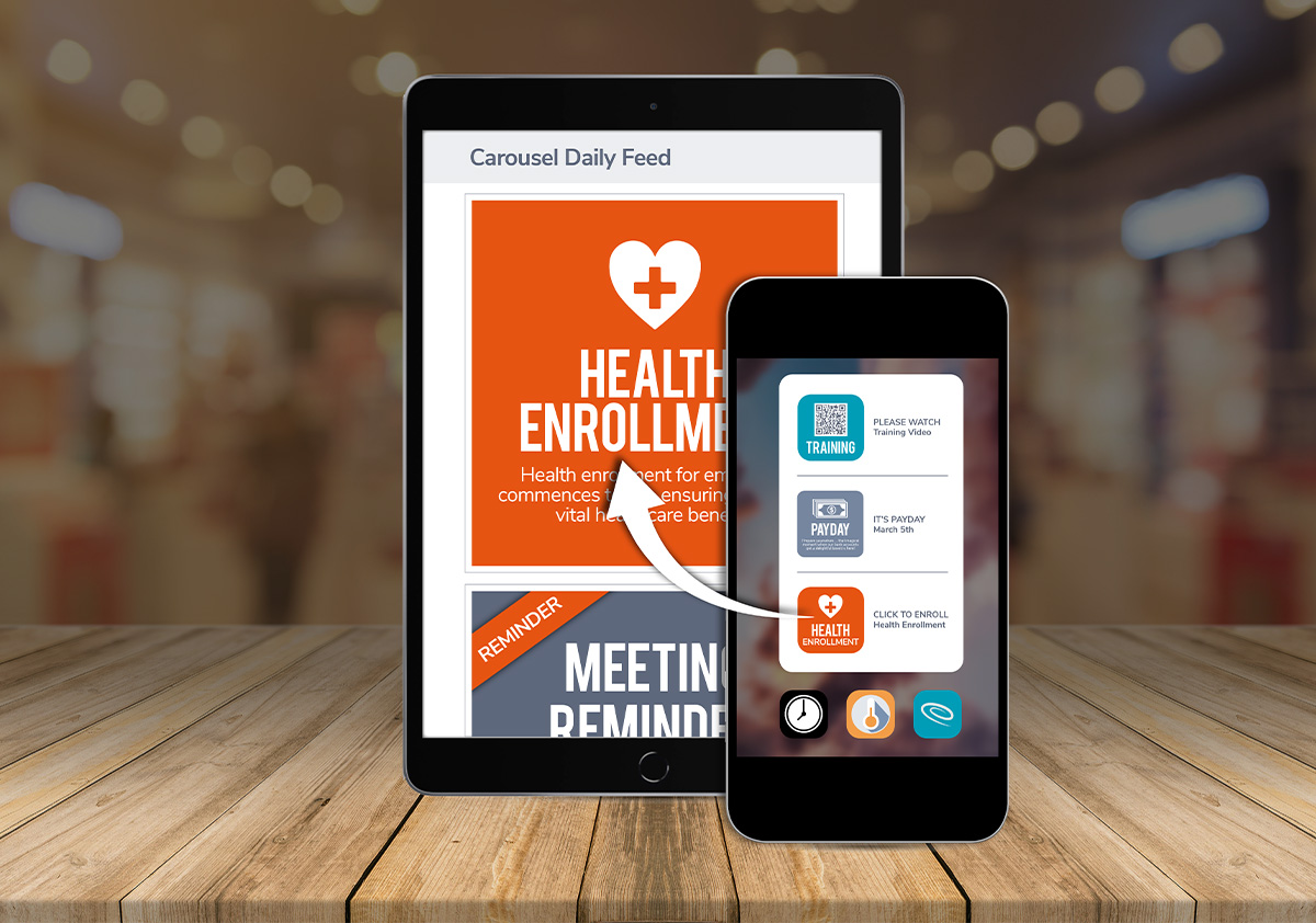 Supercharge employee & student communication with Carousel Daily. Tailor content and extend the reach of traditional digital signage to mobile devices and desktops with a dedicated app and home screen widgets.