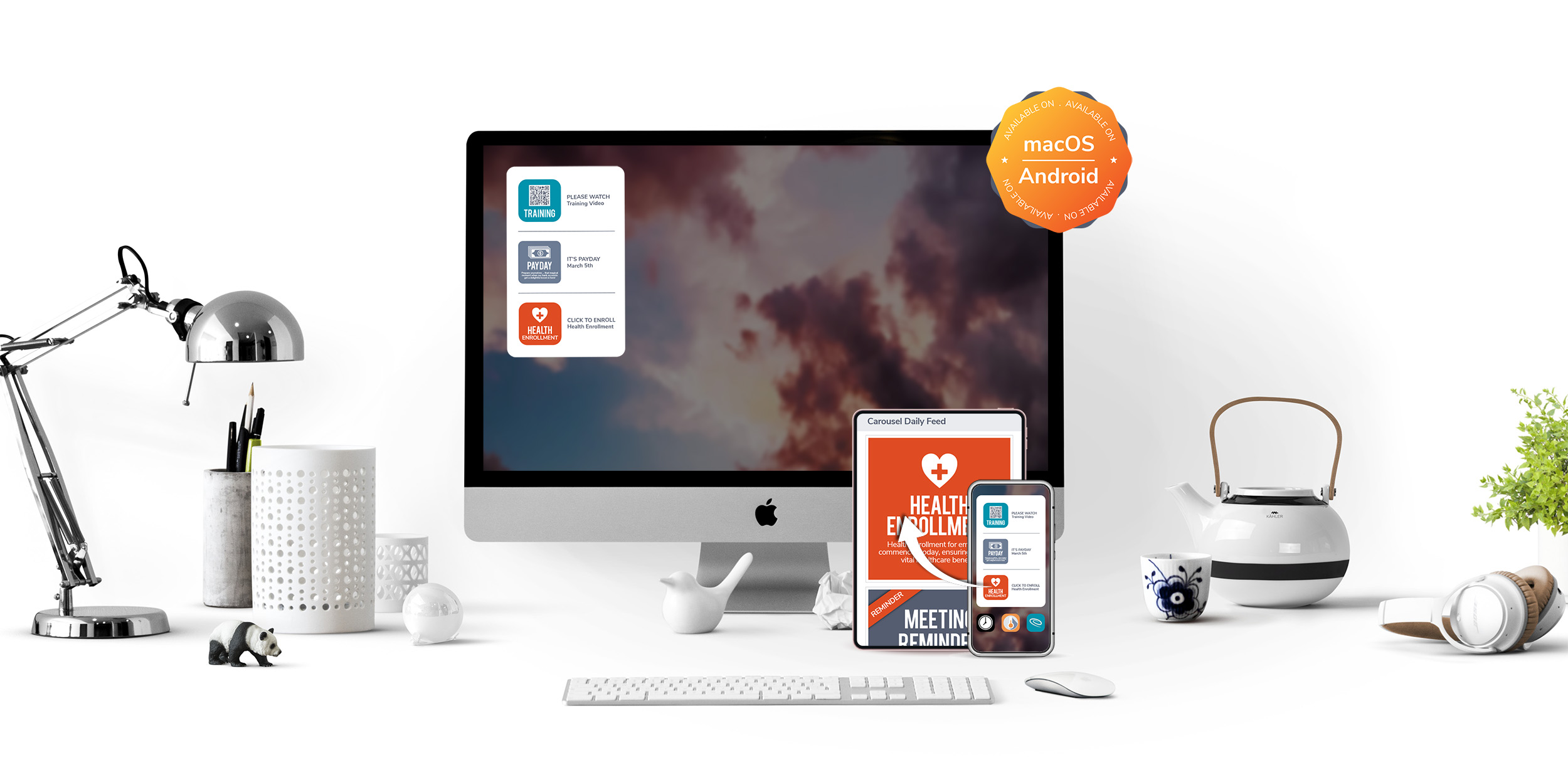 Launched as an iOS-exclusive feature, Carousel Digital Signage has now extended The Daily support to Android personal devices and MacOS desktops and laptops. The new multi-platform support broadly expands the spectrum of devices that The Daily can reach, anchored by the development and launch of Carousel Digital Signage’s first app for Android devices that is now available in the Google Play store.