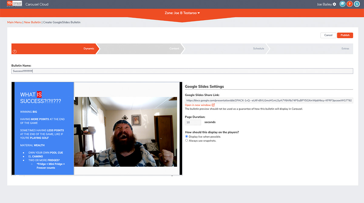 Build your presentations and easily integrate them into Carousel for all to see. Display your presentations along with your other content with ease! This workflow is so seamless that when you update your content in Google Slides, it automatically updates in Carousel.