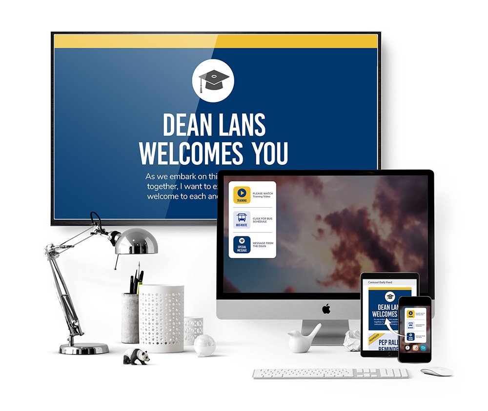 At Carousel, we have the tools to make this possible. Carousel Cloud streamlines content creation, management and delivery to dedicated displays. With The Daily, content administrators may push bulletins—on a targeted basis—to mobile devices. The Daily feeds can be configured for mobile device management (MDM) thanks to our partnership with Jamf. People may also access The Daily bulletins via web links or QR codes.