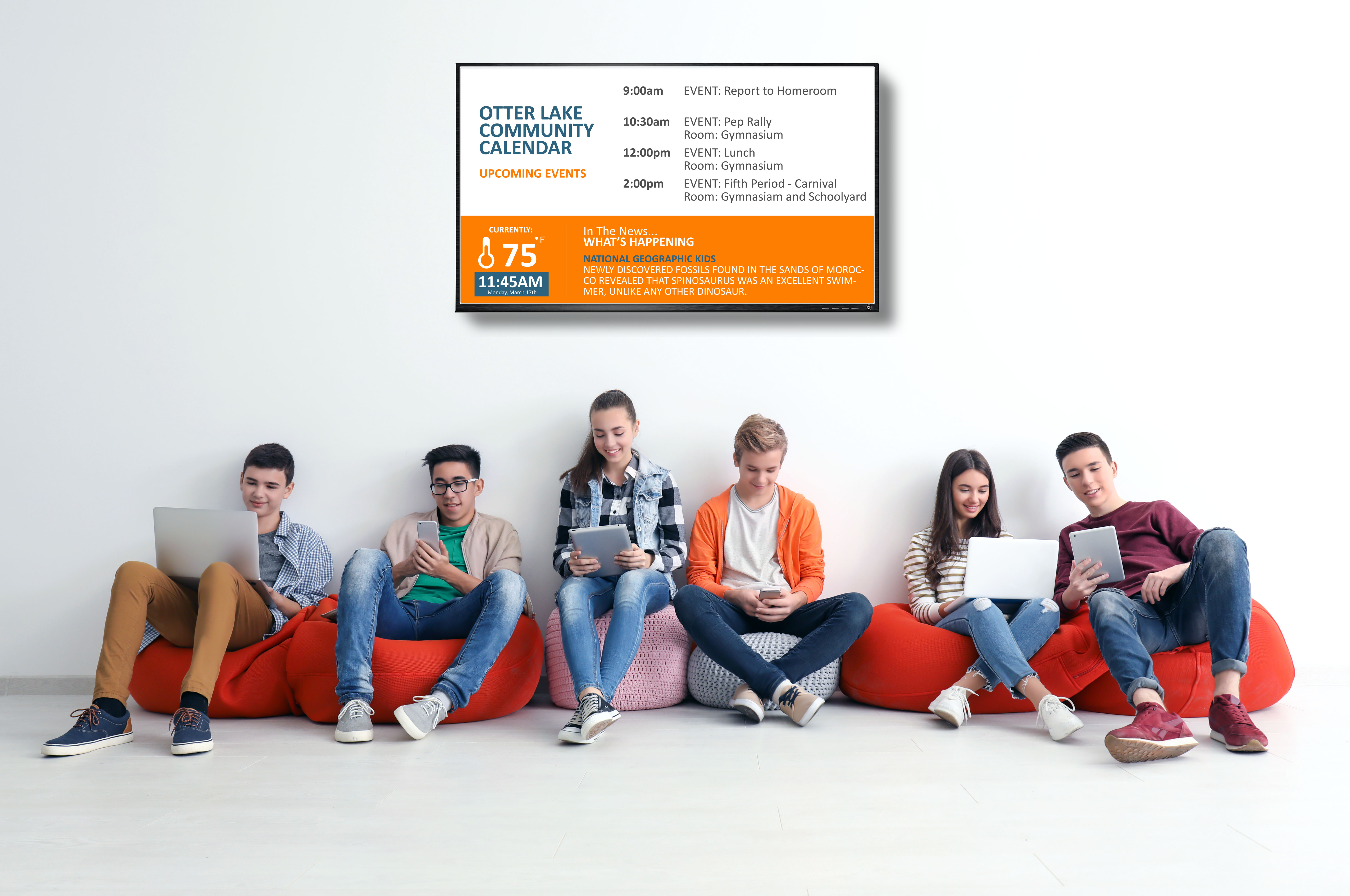 In K-12 education, digital signage offers a perfect vehicle to create a positive school climate where everyone feels safe. It’s a technology that's being used to help amplify and reinforce SEL initiatives. It can help support student safety, foster a positive learning environment and reinforce social and emotional well-being. Use it to help teach self-regulation skills like yoga, mindfulness, and grounding activities. Promote positive behavior and help kids feel connected to their environment by honoring and recognizing them for their hard work, and put counselor & hotline information on display to inform students of services available to them.