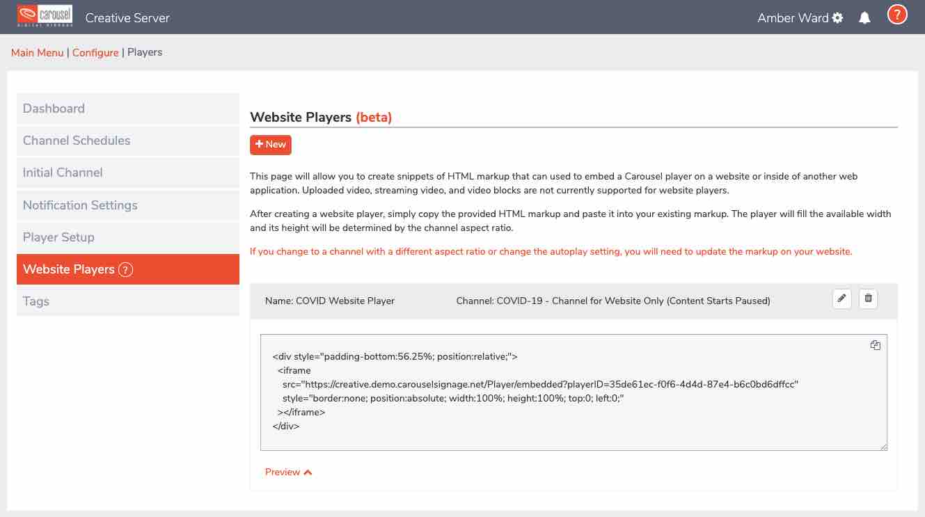 This feature allows you to embed your Carousel Cloud channels directly into your web pages, extending the reach of your content.