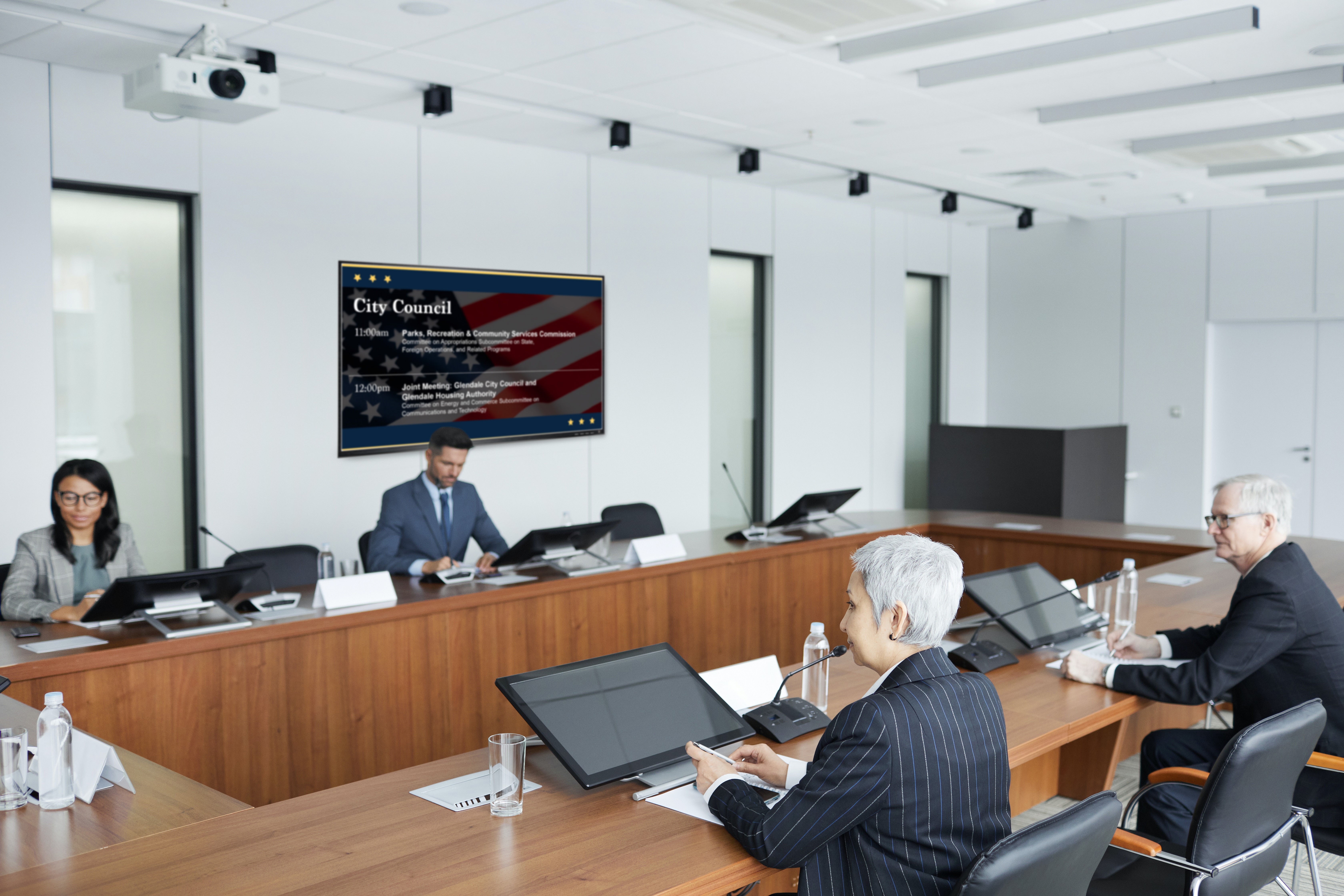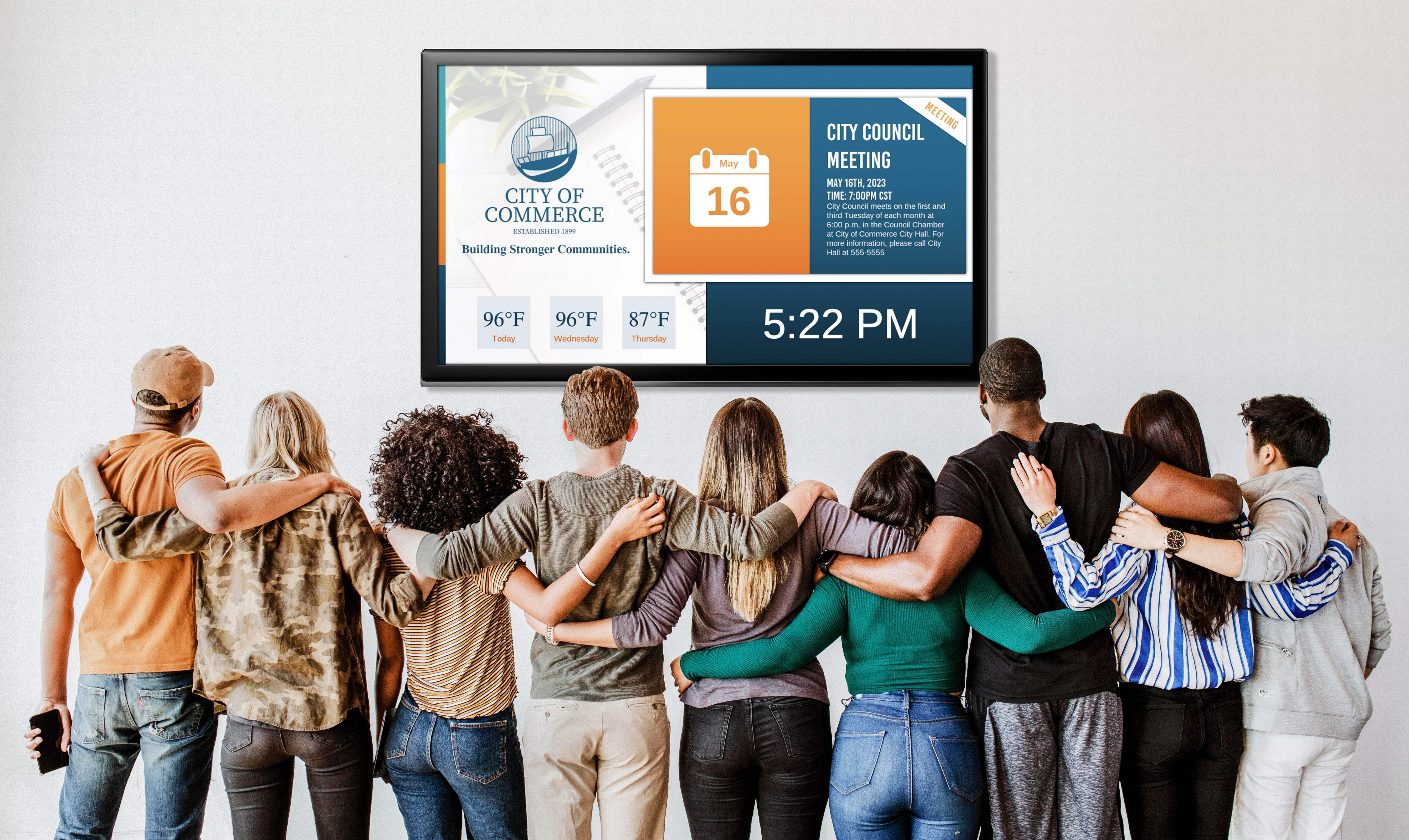 For example, the Community Engagement department provides updates on City initiatives, programs, and volunteer opportunities, while the Public Events department develops content for display inside the City’s main convention center as well as an entertainment, sports, and livestock complex. The County Courthouse uses digital signage to post schedules for upcoming cases to the public. The police department, on the other hand, leverages digital signage for internal use, enabling 911 operators and other emergency response personnel to view shift assignments and crucial information on public events that may result in a higher volume of calls.