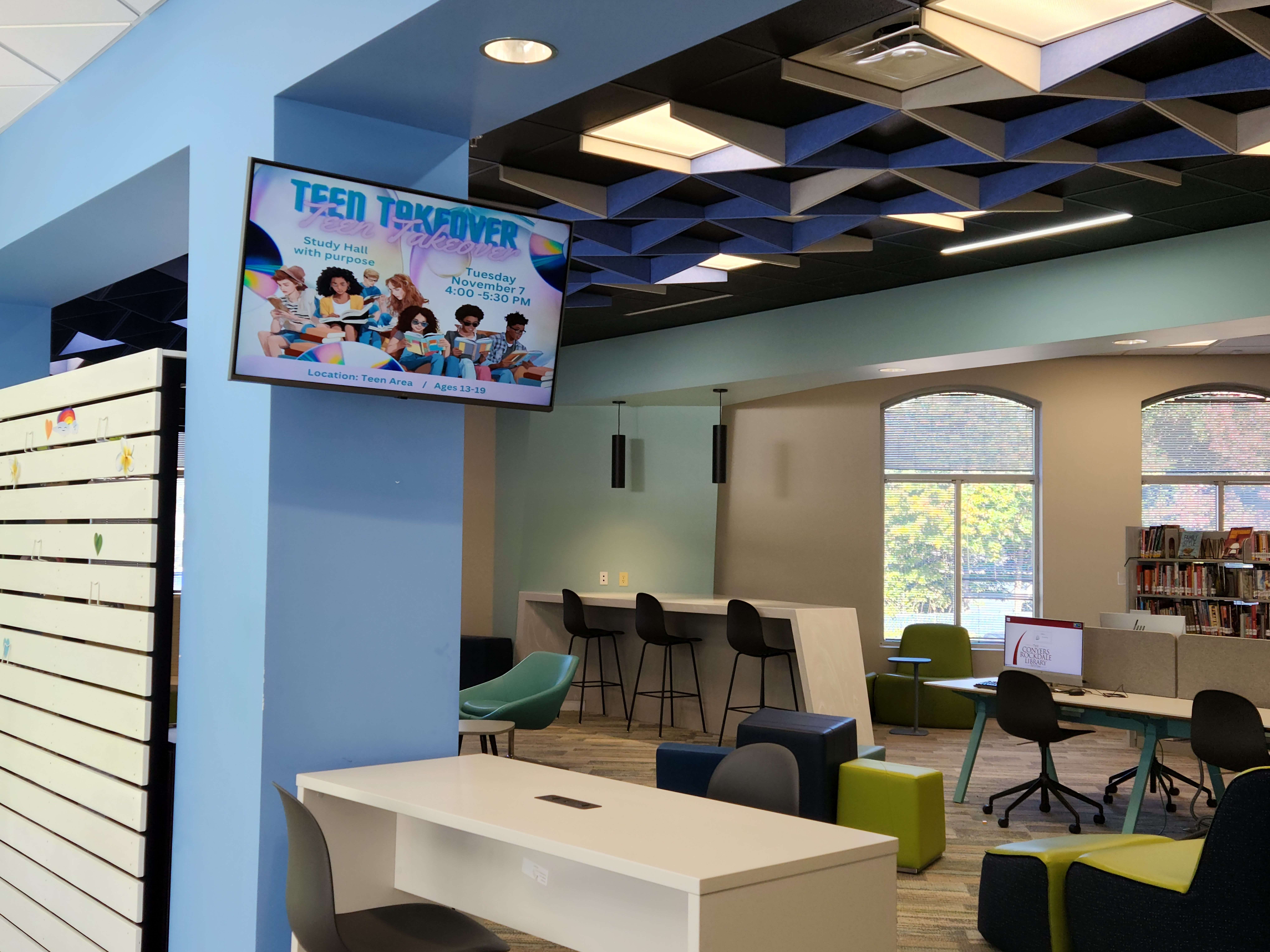 Poku first raised the possibility of bringing digital signage into the library upon joining the organization in her current role more than five years ago. “When I came to the Conyers-Rockdale Library System, it was during a growth period that emphasized technology adoption,” said Poku. “We wanted to maximize our budget and use it in all the right places. My first request was a Carousel Digital Signage system, which I had used at the Newton County Library in Covington, Georgia nearly 20 years ago. That was a 19,000-square-foot library at the time, and we could run it with two people. Carousel played a role in that, in large part because we got rid of the paper.”