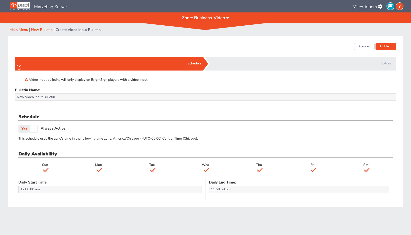 In addition to playing back video files, Carousel let's you play live video sources. You can stream video from your network or take baseband video in via the media players input connection. For example, many BrightSign media players are able to bring in HDCP protected HDMI signals. Please refer to your media player documentation for supported input sources and CODECs.