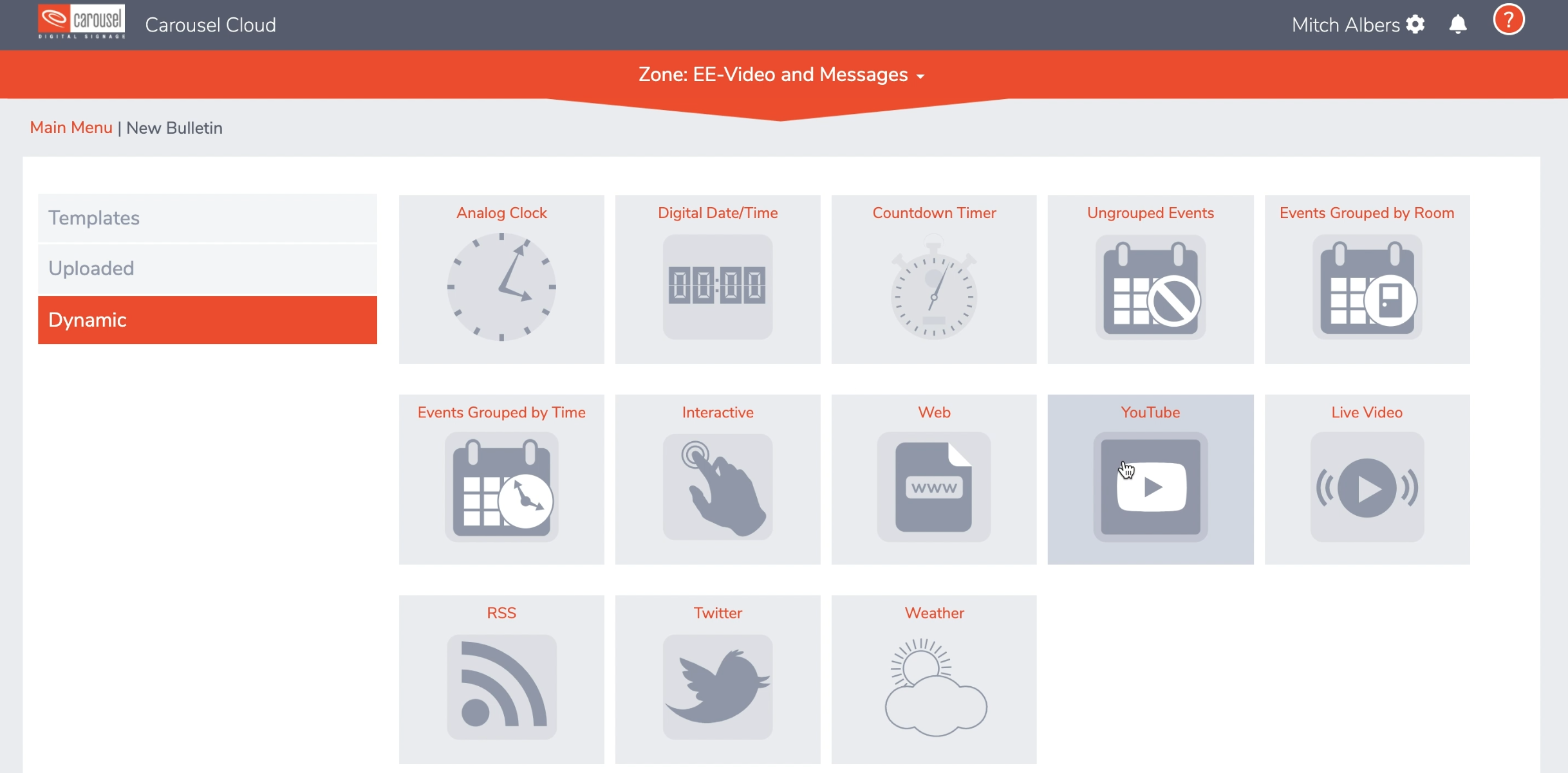 Incorporate video from YouTube as a part of your signage content with Carousel Cloud! YouTube Bulletins can play individual videos, playlists, and YouTube livestreams.